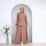 Atasan berpotongan loose dilengkapi dengan aksen 2 saku fake di bagian depan, detail simple yang mempercantik tampilan tanpa memberi kesan ramai. Rok panjang berpotongan lebar memberikan keleluasaan bergerak serta jatuh yang flowy dan ringan. Design semi balon dengan manset berkancing . Cocok untuk tampilan harian, acara santai, hingga momen semi-formal. Wudhu Friendly