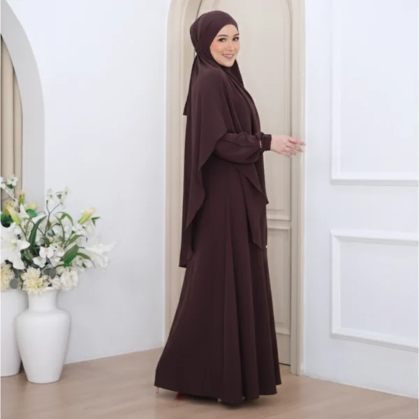 • Abaya dengan cutting A-Line yang jatuh lembut dan anggun