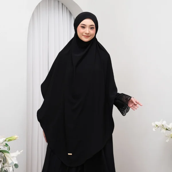SYAHIRA French Khimar dihadirkan sebagai balutan syar’i yang menjaga aurat dengan sempurna, Dengan material premium Hayya Anti UV UPF 50++ untuk perlindungan optimal dari paparan sinar matahari.